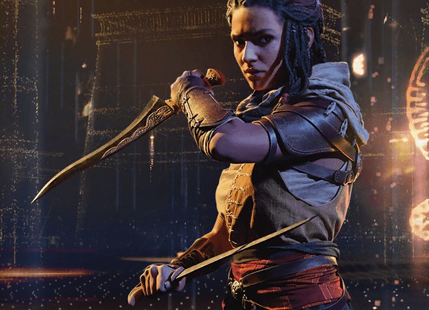 Whenever a historic creature you control deals combat damage to a player, create a 1/1 black Assassin creature token with menace. (Artifacts, legendaries, and Sagas are historic.)