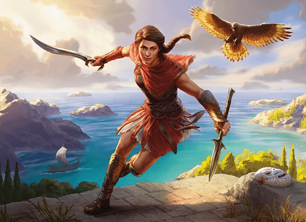 When Kassandra enters, search your graveyard, hand, and library for a card named The Spear of Leonidas, put it onto the battlefield, then shuffle.
