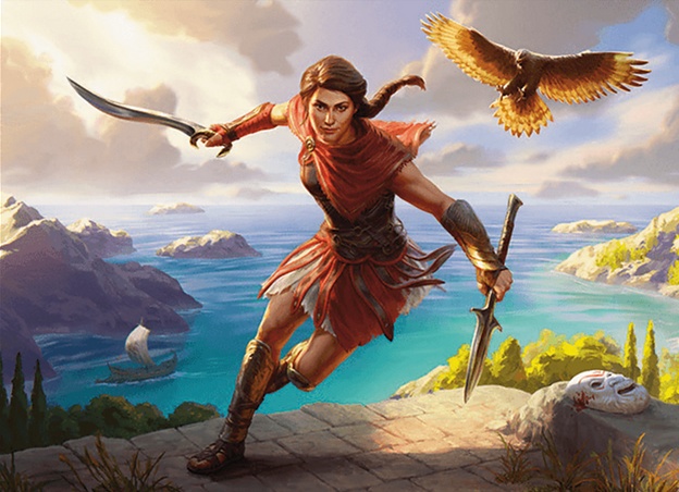 When Kassandra enters, search your graveyard, hand, and library for a card named The Spear of Leonidas, put it onto the battlefield, then shuffle.