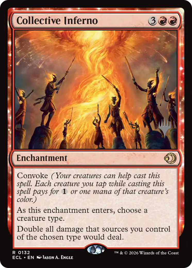 If another effect (or effects) modifies how much damage a source you control of the chosen type would deal (for example, by preventing some of that damage), the player being dealt damage or the controller of the permanent being dealt damage chooses the order in which any such effects, including the effect of Collective Inferno's last ability, apply. If all of the damage is prevented before the effect of Collective Inferno's last ability would apply, its effect no longer applies.