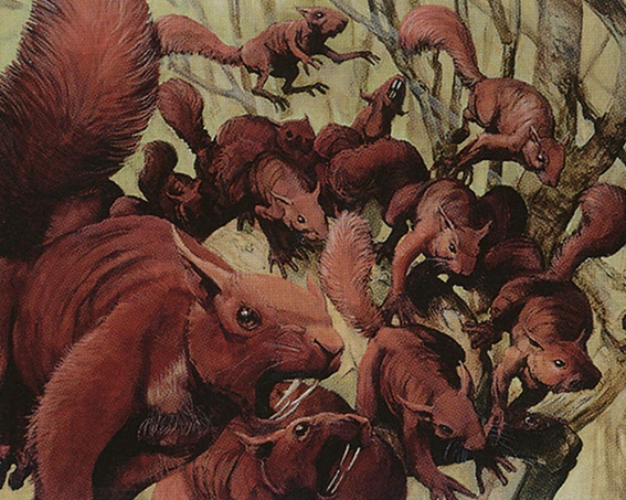 Because damage remains marked on a creature until the cleanup step or an effect removes that damage, nonlethal damage dealt to Squirrel Mob may become lethal if the number of other Squirrels on the battlefield decreases.