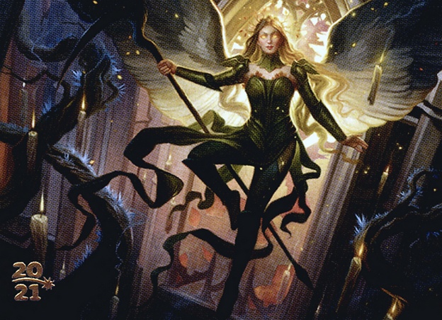 Coven — Whenever Sigarda attacks, if you control three or more creatures with different powers, look at the top five cards of your library. You may reveal a Human creature card from among them and put it into your hand. Put the rest on the bottom of your library in a random order.