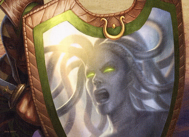 The ability Mirror Shield grants triggers and resolves before combat damage is dealt. That creature won’t deal combat damage to the equipped creature or be dealt damage by it.